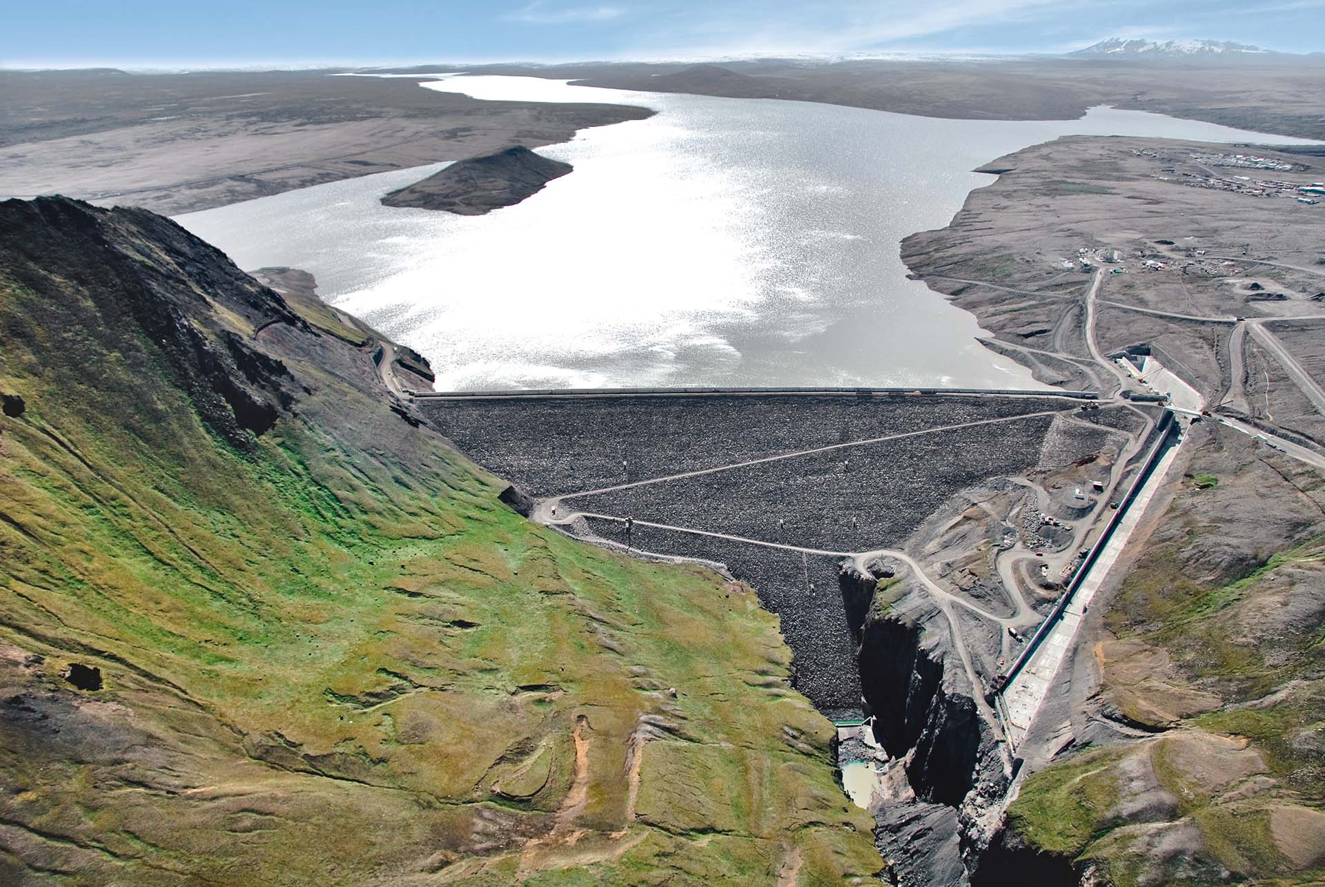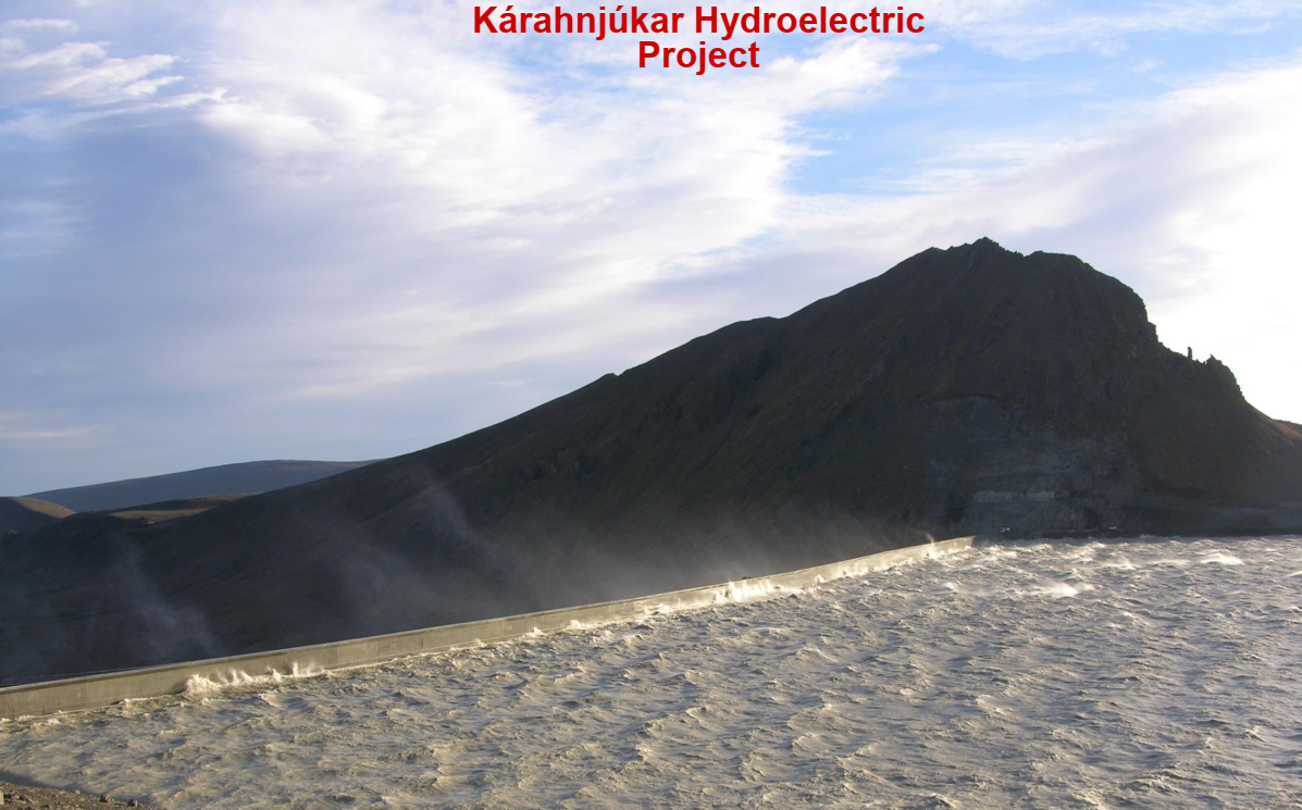 The Kárahnjúkar Dam, the centrepiece of the five dams and the largest of its type in Europe, standing 193 metres (633 ft) tall with a length of 730 metres (2,400 ft) and comprising 8.5 million cubic metres (300×106 cu ft) of material, is the largest dam in the project and the largest of its type in Europe.